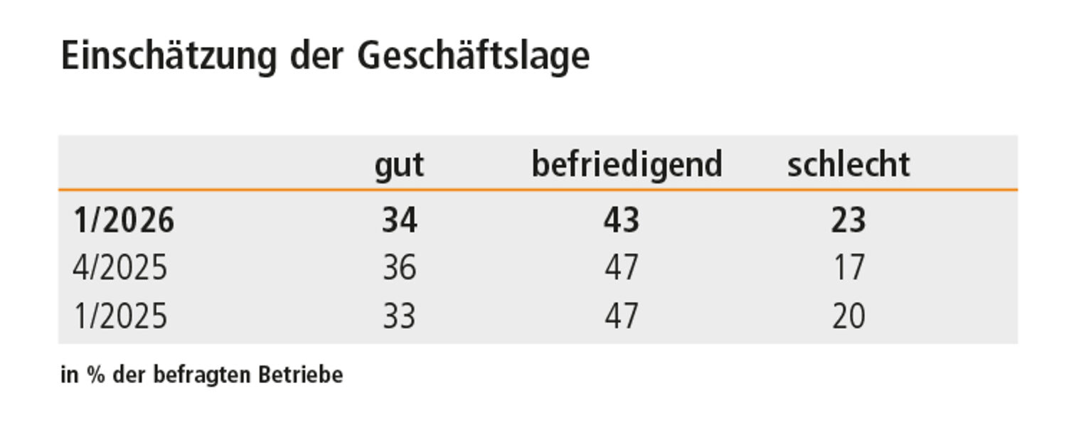 Konjunkturumfrage im schwäbischen Handwerk - 1. Quartal 2026