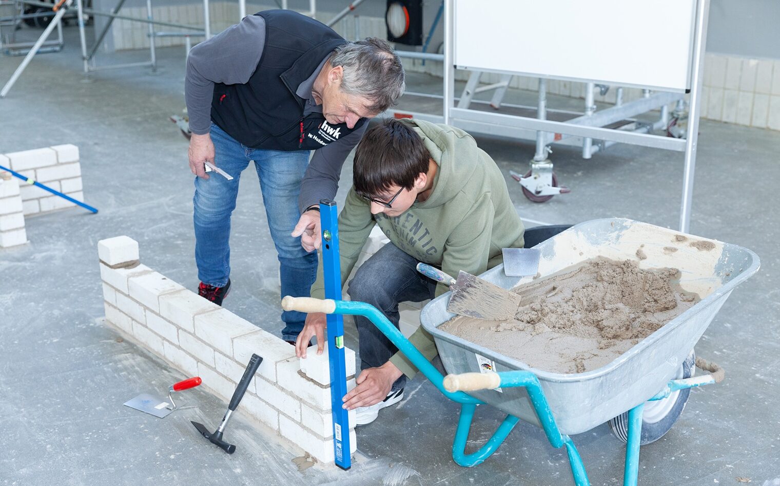 BTZ-Lehrmeister Wolfgang Holderied brachte den Jugendlichen das Maurerhandwerk näher.