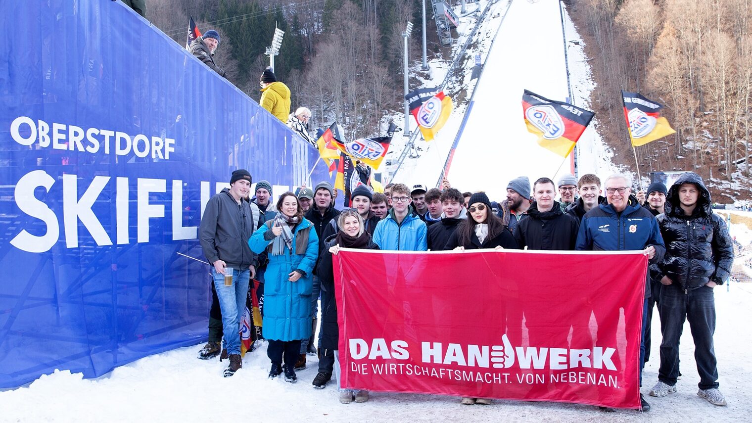 Sonderaktion der HWK Schwaben in Kooperation mit dem Skiclub OberstdorfSchwäbische Handwerks-Azubis bei Skiflug-WM in Oberstdorf